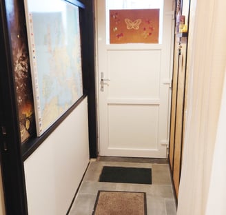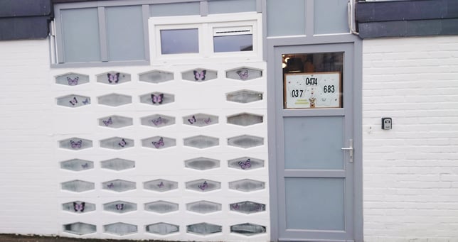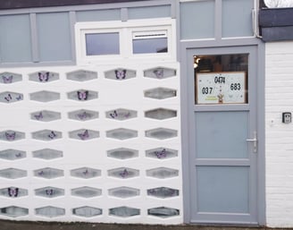 L'entrée vue de l'extérieur, par la Voie du Facteur